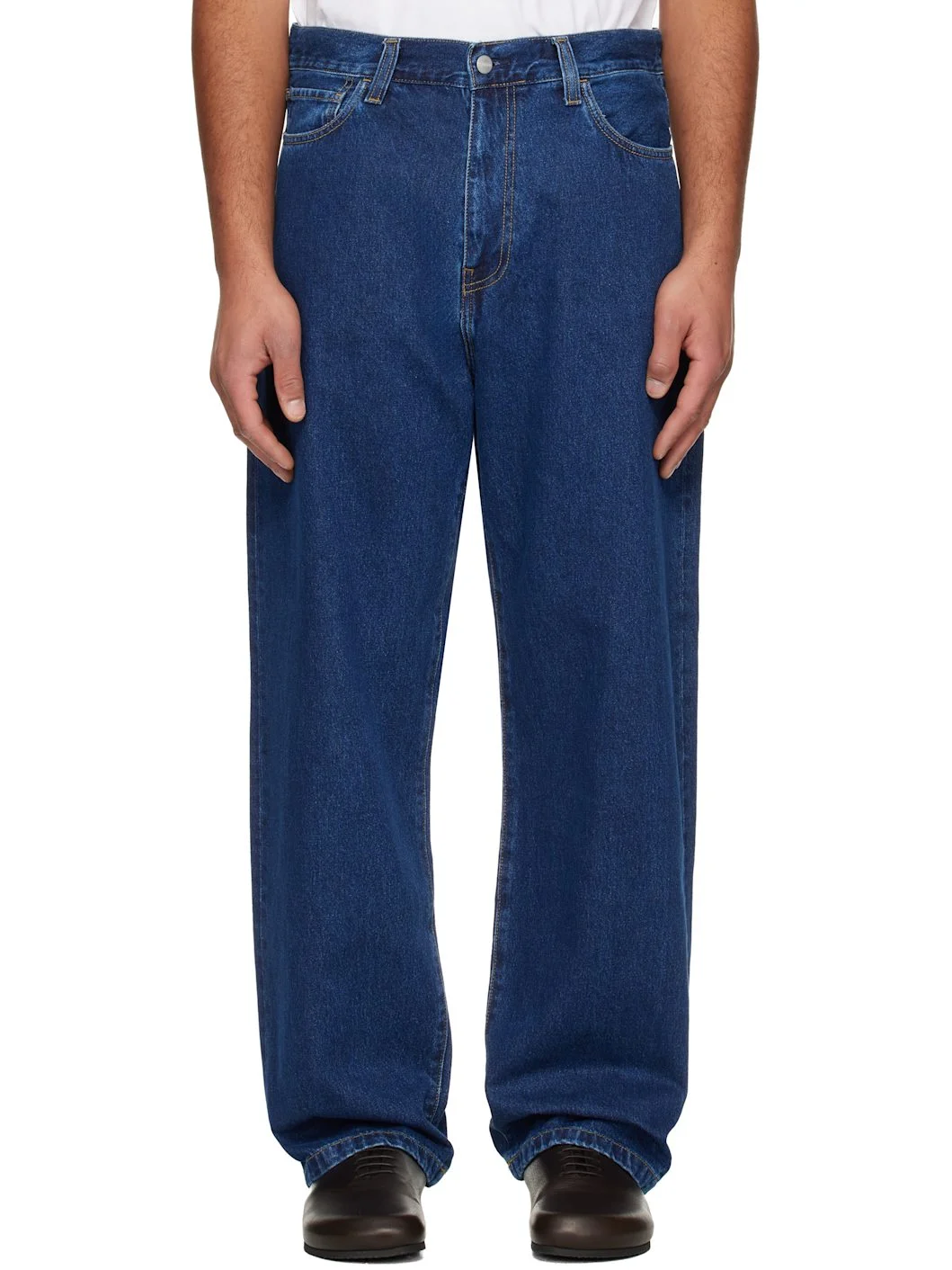 Heavyweight 12 oz non-stretch denim jeans. · Stonewashed · Fading throughout · Loose-fit, tapered · Mid-rise · Belt loops · Five-pocket styling · Zip fly · Logo patch at back pocket · Logo-engraved silver-tone hardware · Contrast stitching in tan Supplier color: Blue (stone washed) Body: 100% cotton. Pocket lining: 65% polyester, 35% cotton. Made in Tunisia 261111M186008
