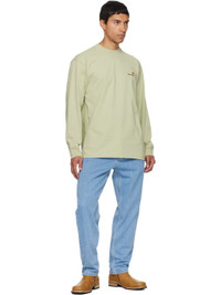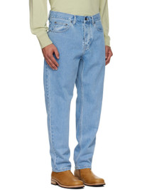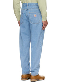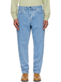 13.5 oz non-stretch Maitland denim jeans. · Tapered · Fading and subtle distressing throughout · Belt loops · Five-pocket styling · Button fly · Logo patch at back pocket · Contrast stitching in tan Supplier color: Blue 100% cotton. Made in Tunisia 252111M186020