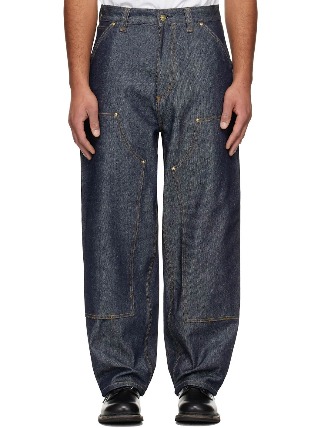 Heavyweight non-stretch recycled cotton denim jeans. · Loose-fit, straight-leg · Mid-rise · Belt loops · Five-pocket styling · Zip fly · Reinforced panel at legs · Patch pockets at outseam · Hammer loop and patch pocket at outseam · Logo patch at back pocket Supplier color: Blue rigid Body: 100% cotton. Pocket lining: 65% polyester, 35% cotton. Made in Tunisia 261111M186016