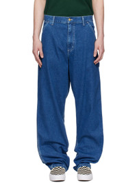 11.25 oz heavyweight non-stretch denim jeans. Fading and reinforced stitching throughout. · Straight-leg · Belt loops · Five-pocket styling · Zip-fly · Hammer loop at outseam · Patch pockets at outseams · Topstitching at back pockets · Logo patch at back pocket · Logo-engraved antiqued gold-tone hardware · Contrast stitching in white Supplier color: Blue Body: 100% cotton. Lining: 65% polyester, 35% cotton. Made in Tunisia 251111M186040