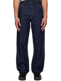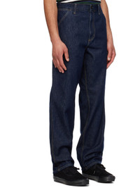 Straight-leg and loose-fit 13.5 oz non-stretch denim jeans. Fading throughout. · Mid-rise · Belt loops · Five-pocket styling · Zip fly · Hammer loop and patch pocket at outseam · Patch pockets at outseam · Logo patch at back pocket · Logo-engraved bronze-tone hardware · Contrast stitching in beige Supplier color: Blue (rinsed) 100% cotton. Made in Tunisia 251111M186029