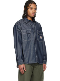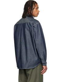 Heavyweight non-stretch denim overshirt. · Spread collar · Button closure · Flap pockets at chest · Logo patch at chest · Shirttail hem · Dropped shoulders · Pleats at buttoned barrel cuffs · Box pleat at back yoke · Contrast stitching in white Supplier color: Blue 50% cotton, 50% polyester. Made in Tunisia 261111M192002