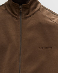The loose-fitting Bolan Jacket from Carhartt WIP was inspired by sportswear looks and is made from a mid-weight polyester-cotton jersey. It has two side pockets with zippers and an elasticated hem and cuffs. The sleeves are finished with knitted stripes and an embroidered script logo on the chest completes the design. - Loose fit - Raglan sleeves - Zippered pockets - Knitted stripes on sleeves - Elasticated cuffs and hem - Embroidered logo Article Number: I033926-2JM.XX Gender: Men Color: CHOCOLATE / TOBACCO Material: 36% Cotton, 64% Polyester