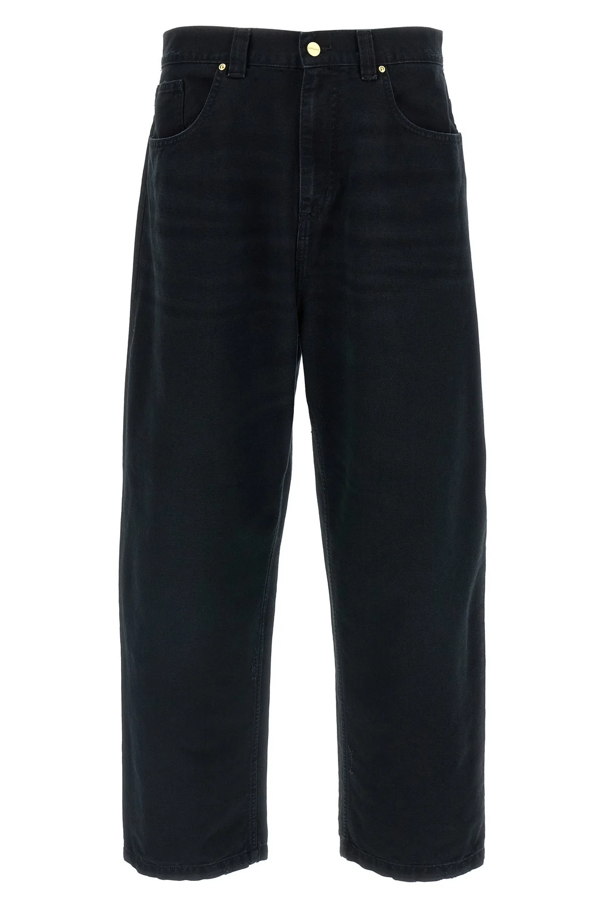cod. I03631189B7 'Brandon' jeans in 'Dearborn' cotton canvas, straight leg and low crotch, zip and button closure, pockets, back logo patch. Color: Black Size & Fit: True to size fit Composition: 100% organic cotton Made in: Tunisia PROMO CODE NOT APPLICABLE
