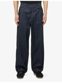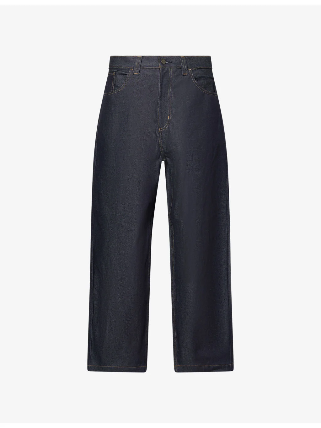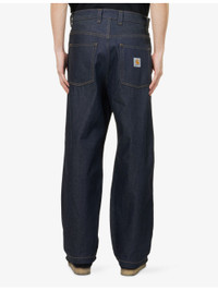 PRODUCT DETAILS - Cahartt WIP denim jeans - 100% cotton; pocketlining 65% polyester, 35% cotton - Exposed button and concealed zip-fly fastening at front - Relaxed fit, high-rise, straight leg, belt loops, five pockets, brand patch at back - Machine wash at 40°C - Size UK 8: rise 15in / 39cm, inside leg 29in / 74 cm, leg opening 18in / 46cm - Model is 6ft 2in/1.88m and wears a size medium - Midweight, non-stretch Ref: R04481681