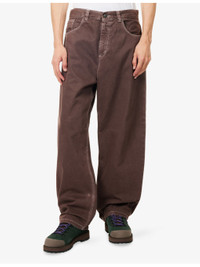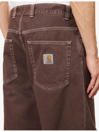 PRODUCT DETAILS - Carhartt WIP denim jeans - 100% cotton; pocketlining 100% cotton - Exposed button and concealed zip-fly fastening at front - Relaxed fit, high-rise, wide leg, belt loops, five pockets, brand patch at back - Machine wash at 40°C - Made in Tunisia - Size medium: rise 15in / 39cm, inside leg 29in / 75cm, leg opening 18in / 46cm - Model is 6ft 2in/1.88m and wears a size medium - Lightweight, slight stretch Ref: R04525424