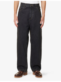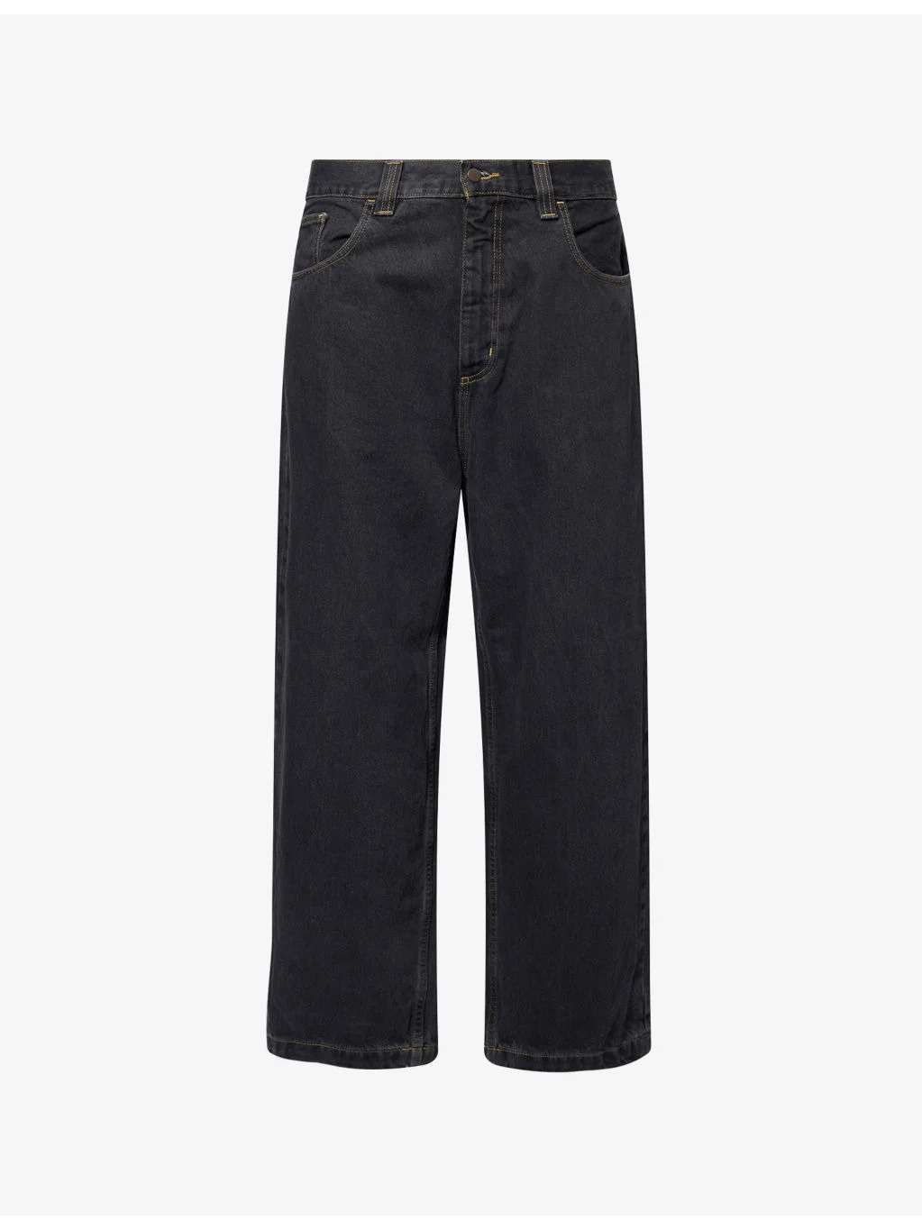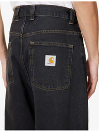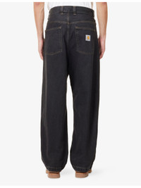 PRODUCT DETAILS - Carhartt WIP denim jeans - 100% cotton - Button and zip-fly fastening - Relaxed fit, high-rise, wide leg, belt loops, five pockets, brand patch at back - Machine wash mild - Size 30: rise 15in / 38cm, inside leg 28in / 71cm, leg opening 18in / 46cm - Model is 6ft 2in/1.88m and wears a size UK 30 - Midweight, non-stretch Ref: R04481683