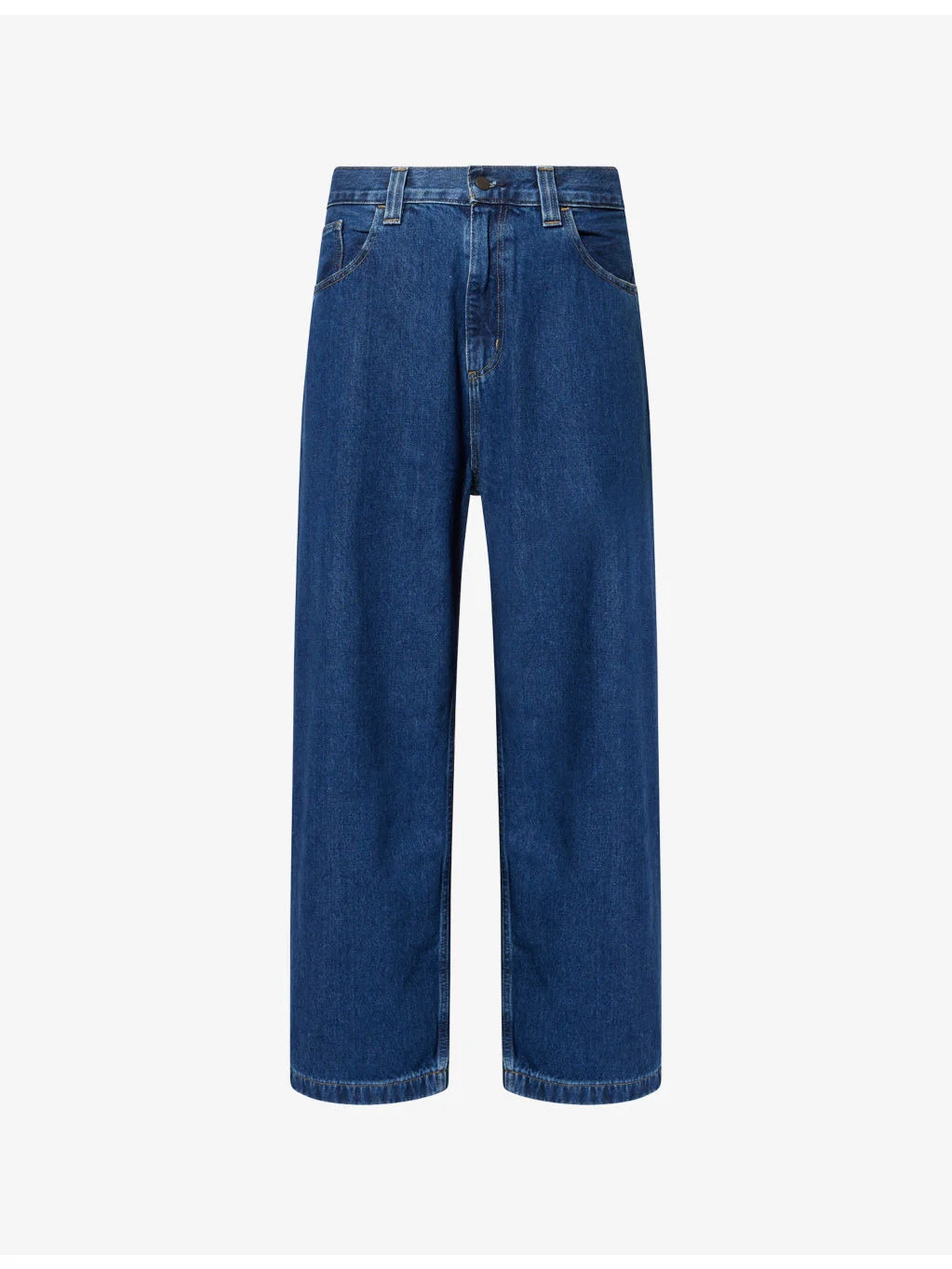 PRODUCT DETAILS - Carhartt WIP denim jeans - 100% cotton - Button and zip-fly fastening at front - Relaxed fit, high-rise, wide leg, belt loops, five pockets, brand patch at back, contrast topstitch, washed - Machine wash at 40°C - Size medium: rise 14.1in / 36cm, inside leg 27.9in / 71cm, leg opening 19.6in / 50cm - Model is 6ft 2in/1.88m and wears a size medium - Midweight, non-stretch Ref: R04553673
