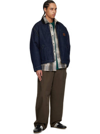 Stonewashed 8 oz cotton twill trousers. · Loose-fit, tapered · Belt loops at partially elasticized waistband · Four-pocket styling · Zip fly · Pleats at front · Logo patch at back Supplier color: Liberica Body: 100% cotton. Lining: 65% polyester, 35% cotton. Made in Tunisia 251111M191030