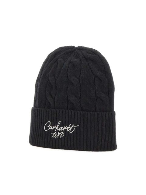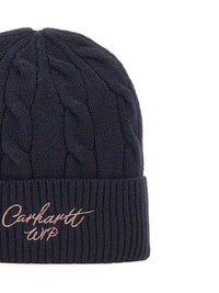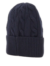 cable-knit embroidered-detail beanie Highlights - Navy blue - Cable-knit - Folded brim - Embroidered logo Imported Composition Wool 80%, Nylon 20%