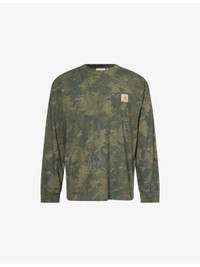 PRODUCT DETAILS - Carhartt WIP cotton-jersey T-shirt - 100% cotton - Relaxed fit, crewneck, long sleeves, brand patch at front, all-over camouflage print, ribbed trims - Machine wash at 30°C - Made in Bulgaria - Model is 6ft 2in/1.88m and wears a size medium - Lightweight, stretchy Ref: R04525454