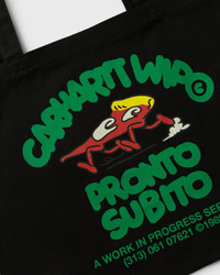 The Canvas Graphic Tote from Carhartt WIP is made from robust Dearborn canvas and features a graphic print on the front. The style is unlined and has reinforced seams on the inside. The bag has a free-swinging inner compartment. - One size: 37cm x 46cm x 14cm - Capacity: 15 liters - 100% cotton (Dearborn Canvas, 11.4 oz) - Free-swinging inner compartment - Graphic print - Flag label Article number: I033975-34I.XX Gender: men,women Color: PRONTO PRINT, BLACK Material: 100% Cotton