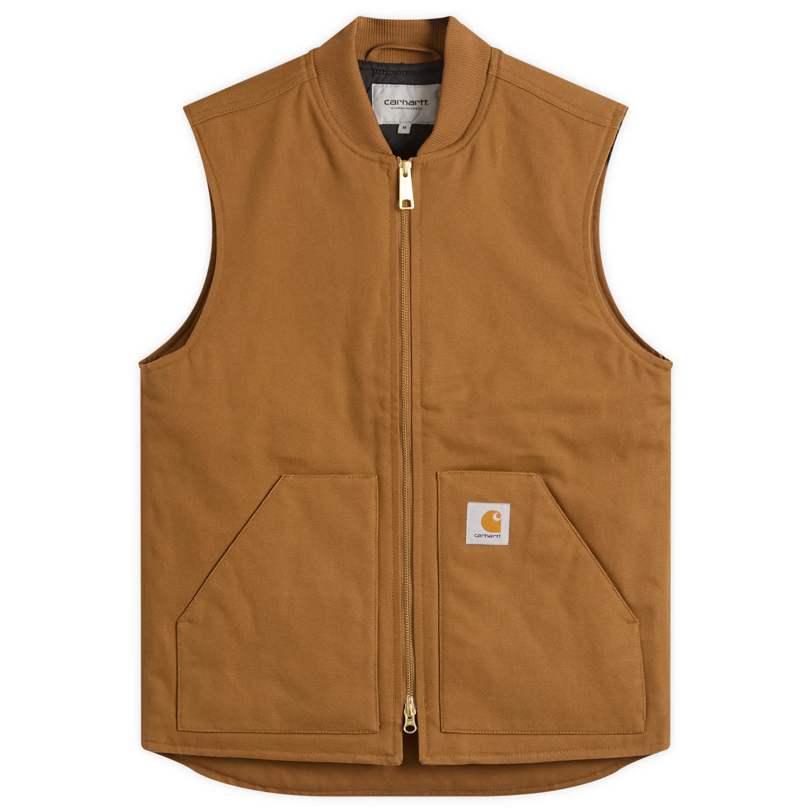 The Carhartt WIP classic vest is built for transitional layering with roots in workwear. Cut from heavyweight Dearborn canvas and lined with diamond quilted nylon taffeta, it offers structure, warmth, and durability. A rib knit collar and two-way zip add functional ease, while the kangaroo pocket delivers utility. Finished with a woven square label, it’s a core piece with timeless grit. - 100% Dearborn Canvas - Diamond Quilted Nylon Taffeta Lining - Rib Knit Collar - 2-Way Zip Closure - Kangaroo Pocket - Woven Brand Label - Style Code: I035695-HZ01