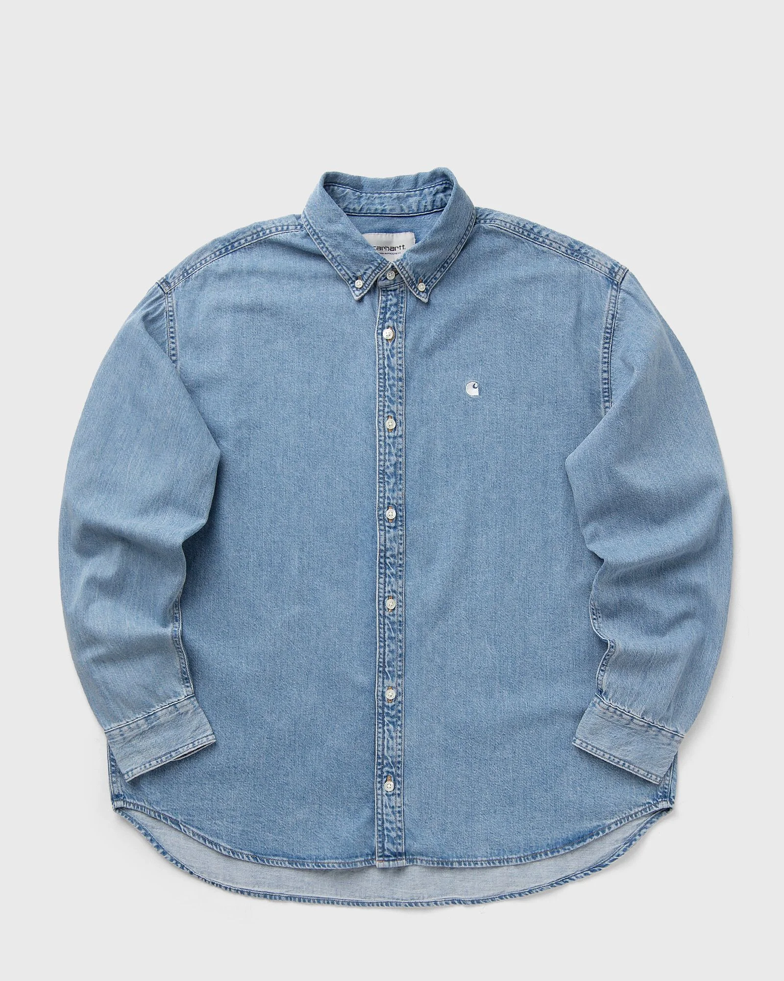 The loose-fitting Carhartt WIP L/S Lucas shirt is made from a medium-weight cotton denim. It features a button placket and a collar. An embroidered C logo on the chest rounds off the design. - Loose fit - Buttoned collar - Embroidered C logo Article number: I034525-01.35 Gender: men Color: BLUE BLEACHED Material: 100% Cotton