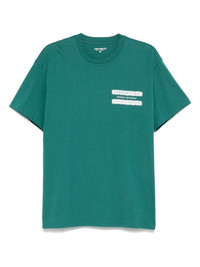Catalogue T-shirt Highlights - Jade green - Logo print at the chest - Crew neck - Short sleeves Imported Composition Organic Cotton 100% SIZE & FIT FittingInformation Designed to be unstructured, offering a loose fit throughout Made from a midweight non-stretch fabric, this piece offers minimal elasticity when worn