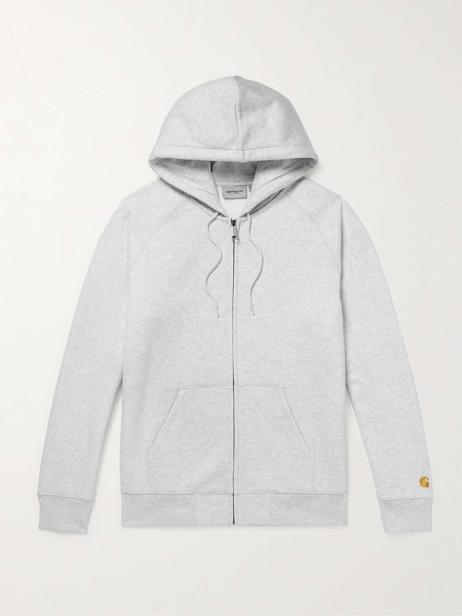 - Light-grey mélange fleece-back cotton-blend jersey - Drawstring hood, embroidered designer emblem, front patch pockets, ribbed trims - Zip fastening - 58% cotton, 42% polyester; trim: 96% cotton, 4% elastane; lining: 100% cotton - Machine wash - Designer colour: Ash Heather