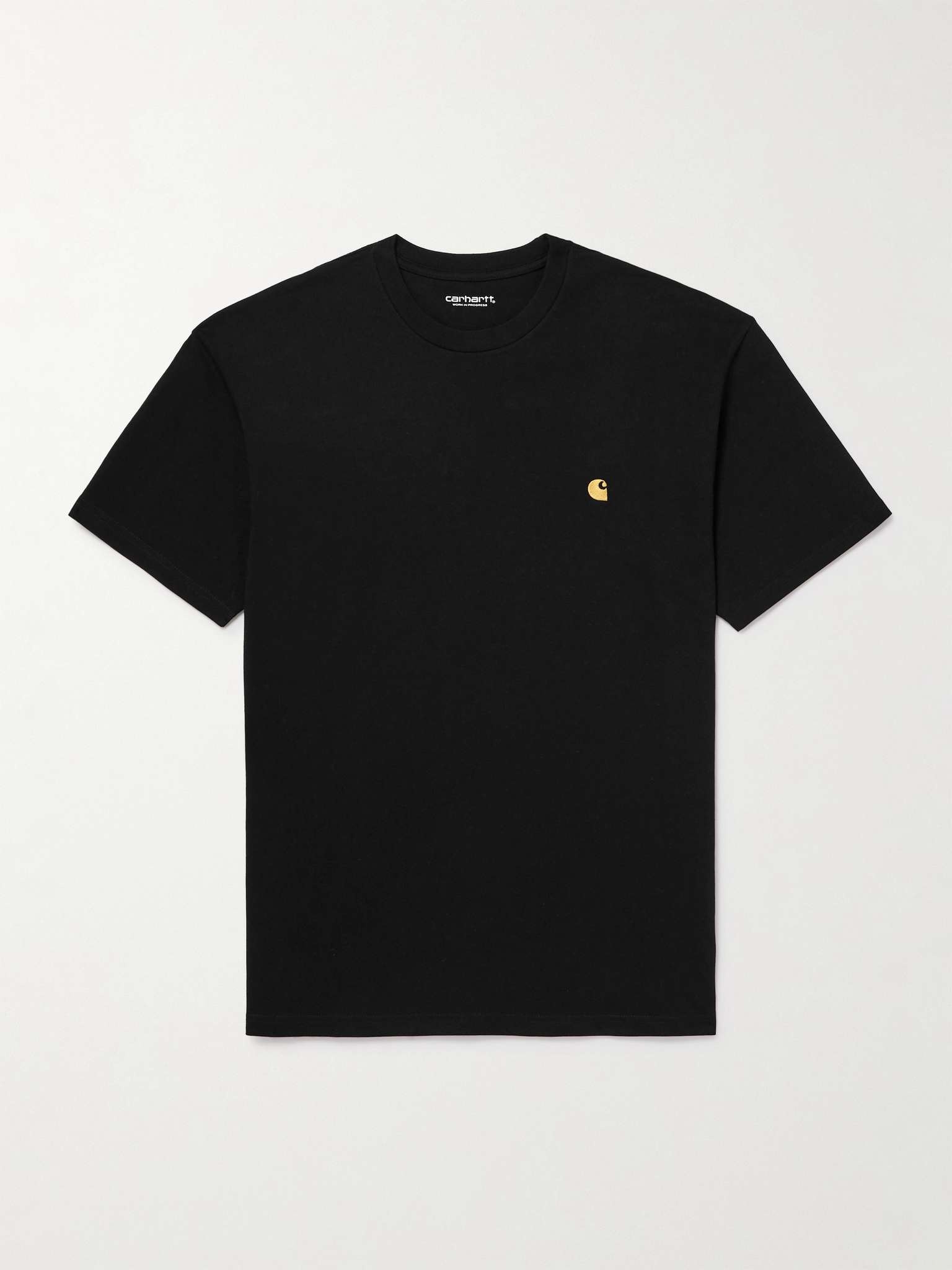 Carhartt WIP's 'Chase' collection is full of casual, jersey staples you'll be able to wear often. This T-shirt is cut for a regular fit from mid-weight cotton that's combed for softness and embroidered with a signature logo at the chest. Size & Fit - Fits true to size. Take your normal size - Designed for a regular fit - Mid-weight, slightly stretchy fabric - S/M/L sizing Details & Care - Black cotton-jersey - 100% cotton - Machine wash