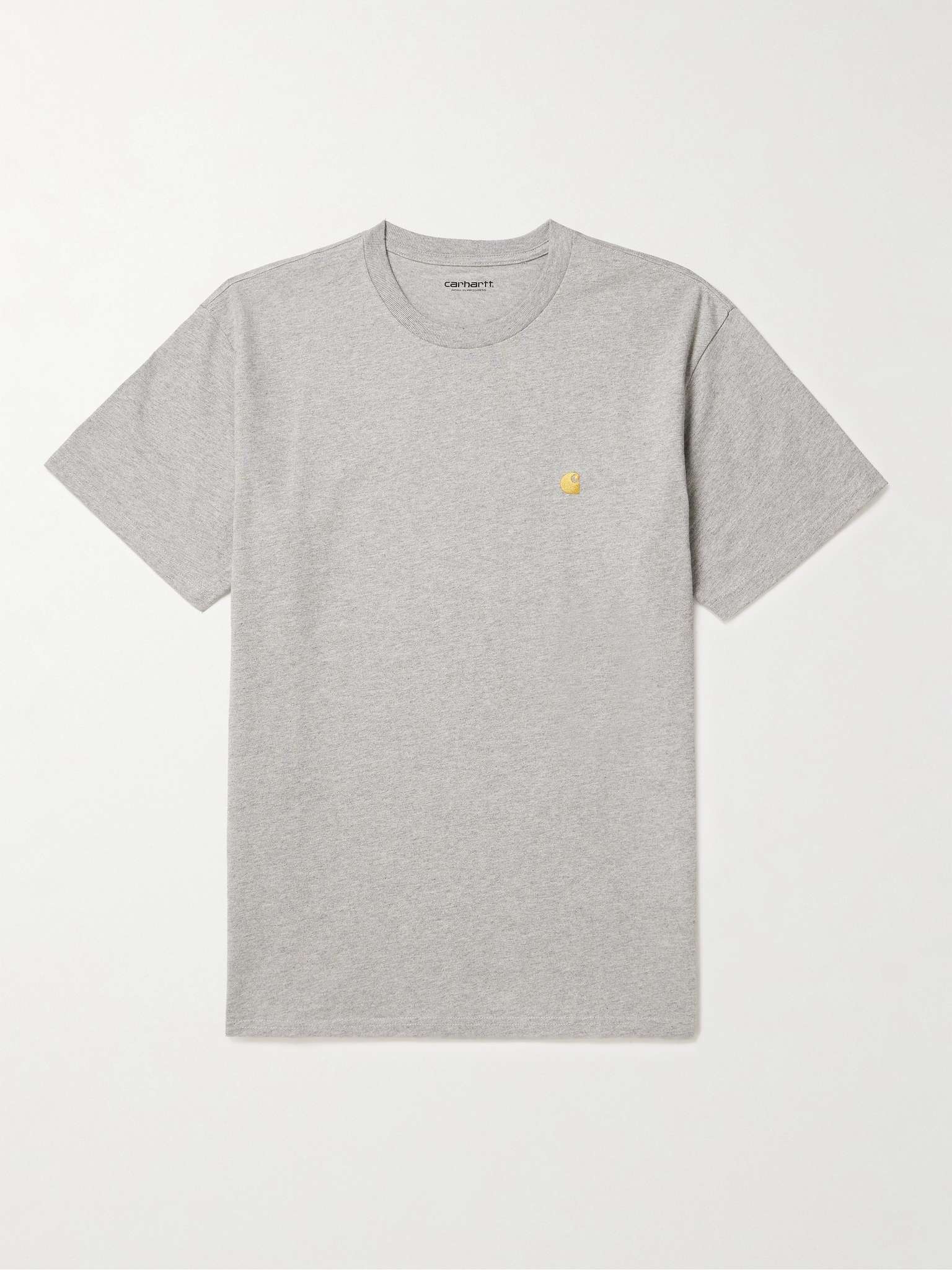 Carhartt WIP's 'Chase' collection is full of casual, jersey staples you'll be able to wear often. This T-shirt is cut for a regular fit from lightweight cotton that's combed for softness and embroidered with a signature logo at the chest. Size & Fit - Fits true to size. Take your normal size - Designed for a regular fit - Mid-weight, slightly stretchy fabric - S/M/L sizing Details & Care - Grey cotton-jersey - 100% cotton - Machine wash