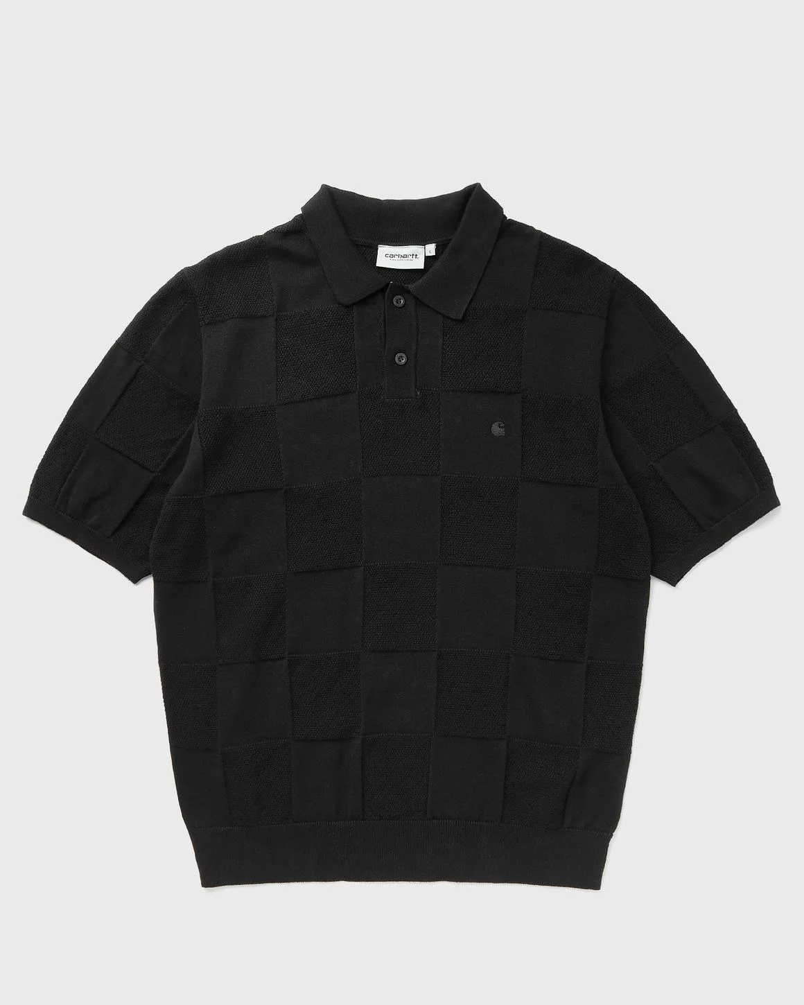 The S/S Checker Polo from Carhartt WIP is a lightweight cotton knit design with a checkerboard pattern. The style features a ribbed collar and short button placket. An embroidered C logo on the chest completes the design. - 100% cotton (12 gg) - Ribbed cuffs - Embroidered C logo Article Number: I034535-89.XX Gender: Men Color: black Material: 100% Cotton