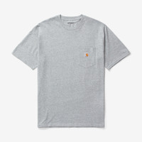 This Carhartt WIP Short-Sleeve Pocket T-Shirt is a cotton jersey tee that features a chest pocket with a classic woven Carhartt WIP label. The grey shirt has been garment-washed and features a left chest pocket. - Carhartt WIP Short-Sleeve Pocket T-Shirt - Loose fit - Garment washed - 100% cotton Article no. I030434.V6XX Gender: MEN Color: Grey Heather