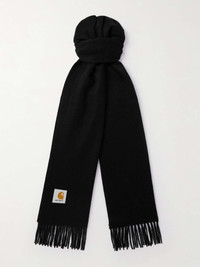 Carhatt WIP's 'Clan' scarf is made from smooth, insulating wool and finished with classic fringing at the ends. It's appliquéd with the label's square logo and works well draped or knotted. Size & Fit - Length: 190cm / 74.8in - Width: 31cm / 12.2in Details & Care - Black wool - 100% wool - Dry clean