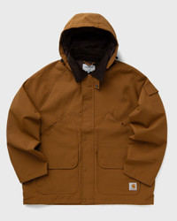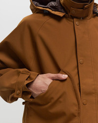 The Clarton Jacket from Carhartt WIP is made from a medium-weight nylon canvas and is lined with nylon taffeta. The jacket is equipped with a hood and a corduroy collar that can be closed with a press stud. Important essentials can be stowed in the flap pockets on the front and in a pocket on the sleeve. A woven square label rounds off the design. - Nylon taffeta lining - Inner chest pocket - Corduroy collar with strap - Two-way zipper and press studs - Adjustable cuffs and hem - Flap pockets with side access - Sleeve pocket with flap and press stud - Square label Article Number: I033871-00S.XX Gender: Men Color: Hamilton Brown / Tobacco Material: 100% Nylon