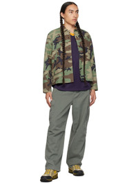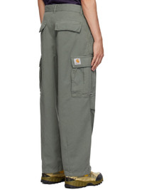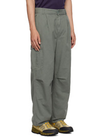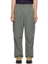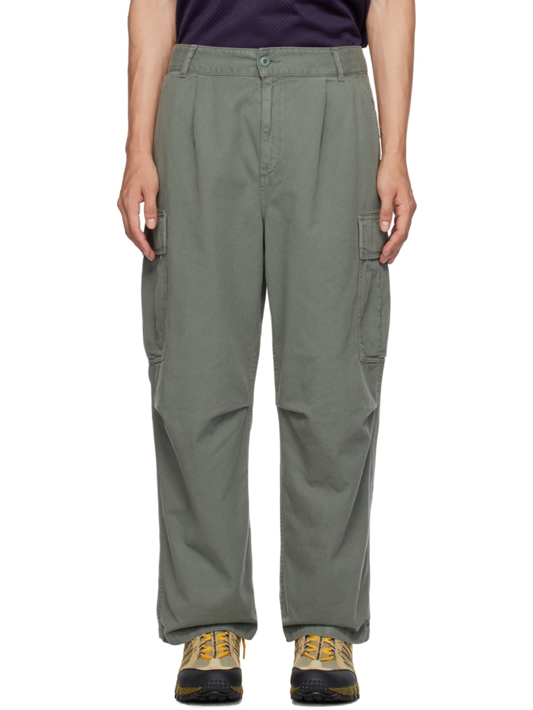 Relaxed-fit garment-dyed 8.25 oz organic cotton twill cargo pants. · Belt loops · Four-pocket styling · Zip-fly · Pleats front · Bellows pocket at outseams · Logo patch at outseam Supplier color: Smoke green