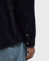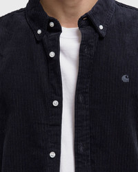 The long-sleeved L/S Madison Cord Shirt by Carhartt WIP is made from heavyweight eight-rib cotton corduroy and garment-washed. It features a button-down collar and embroidered logo on the left chest. - Button-down collar - Garment-washed treatment - Embroidered logo Article number: I029958-0FH.XX Gender: men Color: DARK NAVY / DARK NAVY Material: 100% Cotton