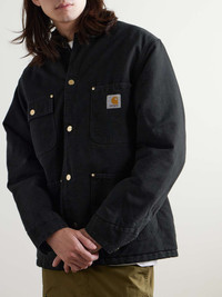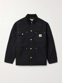 Carhartt WIP's 'OG Chore' jacket takes cues from classic workwear. Triple-stitched for extra durability, it's made from the label's signature 12oz. organic cotton-canvas called 'Dearborn' and washed for a slightly faded finish. A soft corduroy collar and diamond-quilted lining keep it comfortable and warm. Size & Fit - Those with broad shoulders may wish to take the next size up - Weighted, non-stretchy fabric - Model is shown wearing a M - S/M/L sizing Details & Care - Black organic cotton-canvas and corduroy - Snap fastenings - 100% organic cotton; padding: 100% polyester; lining: 100% polyester - Dry clean