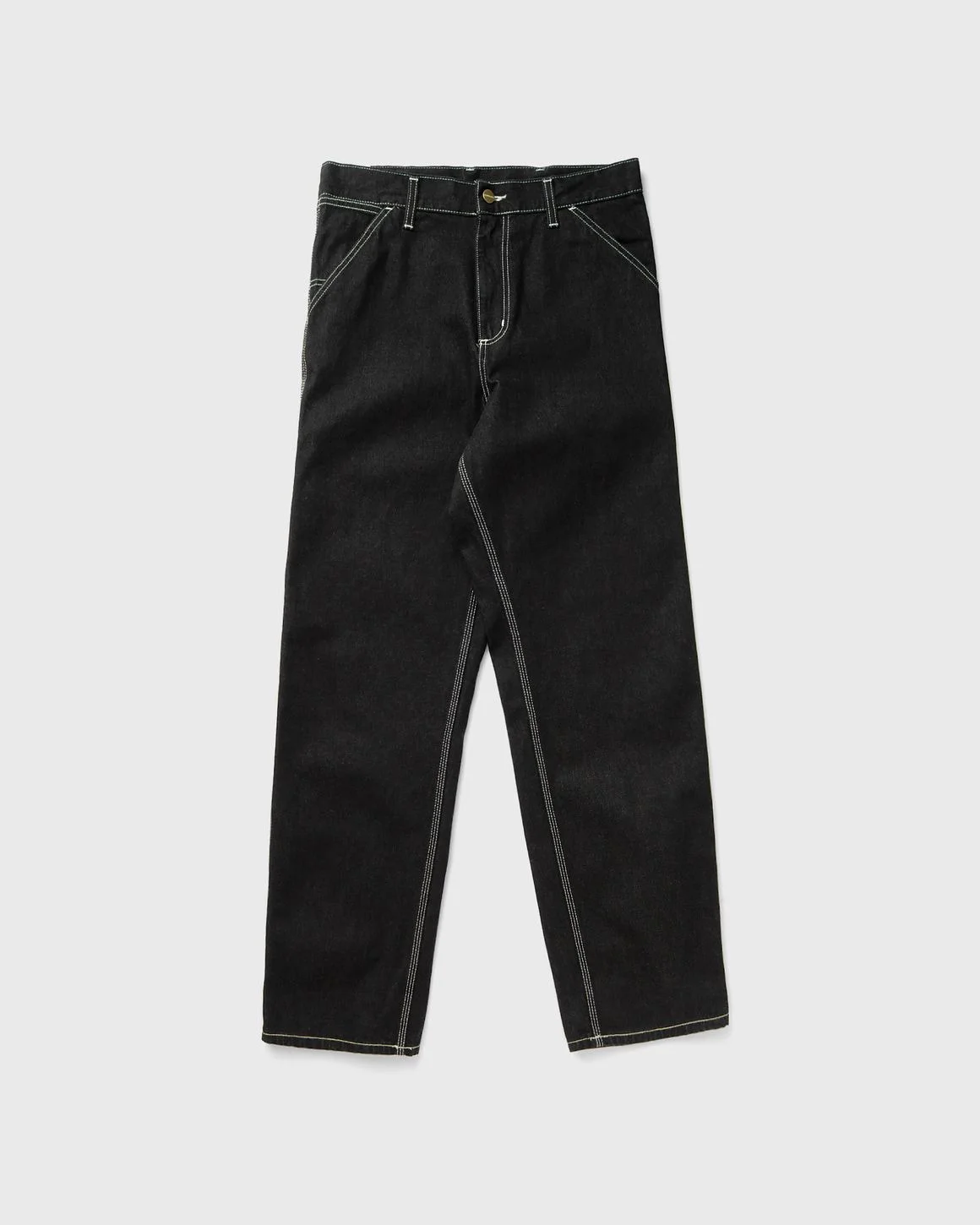 The Single Knee Pant from Carhartt WIP is inspired by the silhouette of classic work trousers and is made from Norco denim, a durable cotton twill. The casually cut straight-leg trousers have a regular waist. Bar-tack seams in particularly exposed areas make the model even more durable. Tool pockets and a hammer loop further emphasize the utilitarian aesthetic of the style. A woven heart label on the back pocket rounds off the design. - Relaxed straight fit, regular rise - Triple seams - Bar-tacked seams in high-wear areas - Zip fly - Heart label Article Number: I034864-89.02 Gender: Men Color: BLACK RINSED Material: 100% Cotton