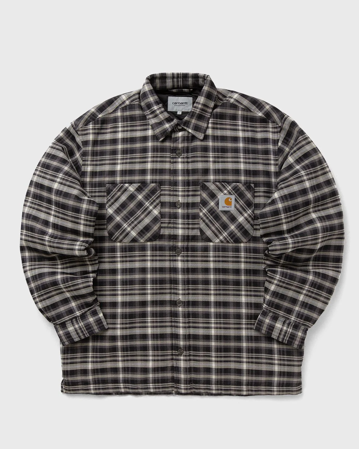 The Cronyn Shirt Jacket by Carhartt WIP is made from medium-weight polyester-cotton twill with a quilted lining. The style fastens with buttons and is equipped with two breast pockets, two side pockets and adjustable cuffs. A woven square label rounds off the design. - Yarn-dyed - Quilted lining - Two chest pockets - Two side pockets - Buttons - Adjustable cuffs - Square label Article Number: I035312-3CR.XX Gender: Men Color: CRONYN CHECK, PORPHYRY Material: 65% Cotton, 35% Polyester