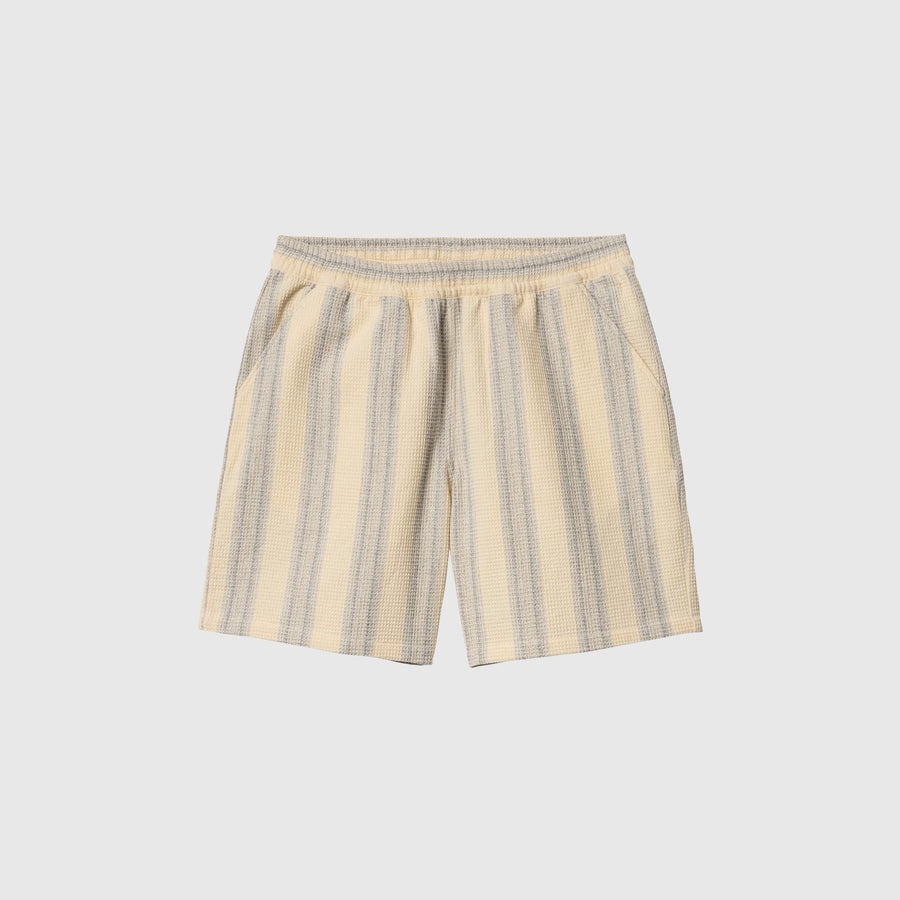 - I033692 2A2XX - Dodson Stripe/Natural - 100% Cotton - Textured cotton waffle - Yarn dyed - Elastic waistband with drawcord - Two side pockets - Rear patch pocket - Square label - Regular fit