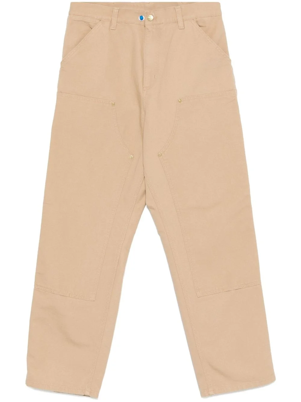Double Knee trousers Highlights - Beige - Concealed fly and button fastening - Two side slash pockets Imported Composition Outer: Organic Cotton 100% Lining: Polyester 65%, Cotton 35% SIZE & FIT Model measurements Height 6 ft 2 in(1.87 m) Bust/Chest 37.79 in(96 cm) Hips 37.79 in(96 cm) Waist 30.31 in(77 cm) FittingInformation Designed for a relaxed straight leg, allowing a comfortable and loose fit over the leg Sturdy and hard-wearing, this denim piece offers no stretch