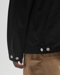 The Drewe Chore Coat from Carhartt WIP has a classic, functional silhouette and is made from an unlined, mid-weight cotton twill. The style is equipped with triple seams and 4 front pockets, one of which has a buttoned flap. There is a further breast pocket on the inside, while a heart patch rounds off the design. - Unlined - Triple seams - Bar-tacked seams in high-wear areas - Buttons with logo - Two breast pockets, one with flap and button - Inner breast pocket - Adjustable cuffs and waistband - Heart patch Article Number: I034823-89.02 Gender: Men Color: BLACK RINSED Material: 100% Cotton