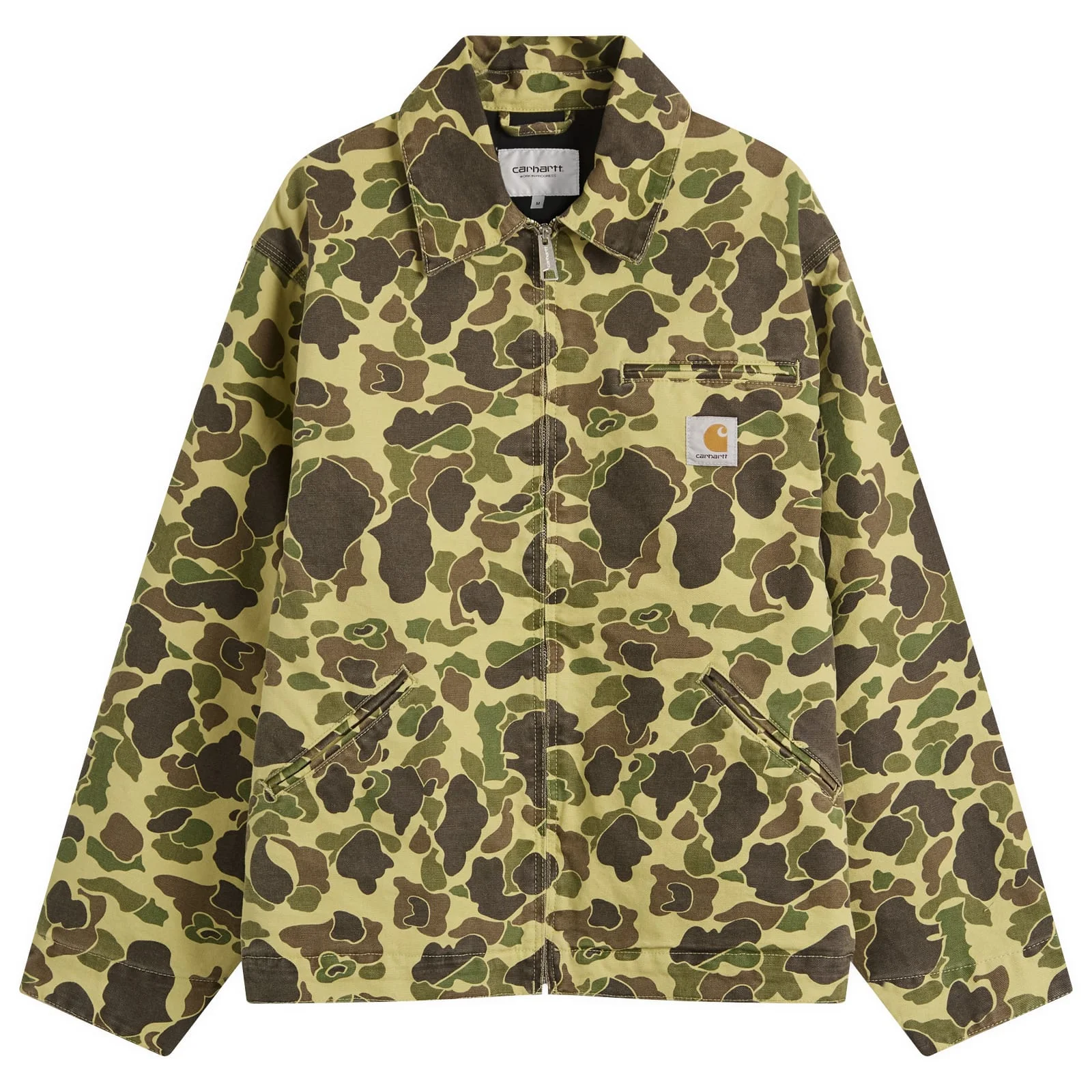 The Carhartt WIP duck Detroit jacket fuses rugged workwear construction with streetwear. Made from organic Dearborn canvas, it’s fully lined for warmth and garment dyed to achieve a softer hand and layered camouflage tones. Triple-stitch seams and a zipped chest pocket reinforce its utilitarian roots, while its sharp silhouette gives it a contemporary appeal. Finished with a woven square label, it’s a durable outer layer built for movement, grit, and style. This product has undergone a garment dyeing process. Any uneven colour of the surface is a distinctive feature of the wash. - 100% Organic Cotton - Dearborn Canvas - Garment Dyed - Side Pockets - Zip Closure - Interior Chest Pocket - Triple Stitched - Woven Brand Label - Style Code: I034281-2EQ06