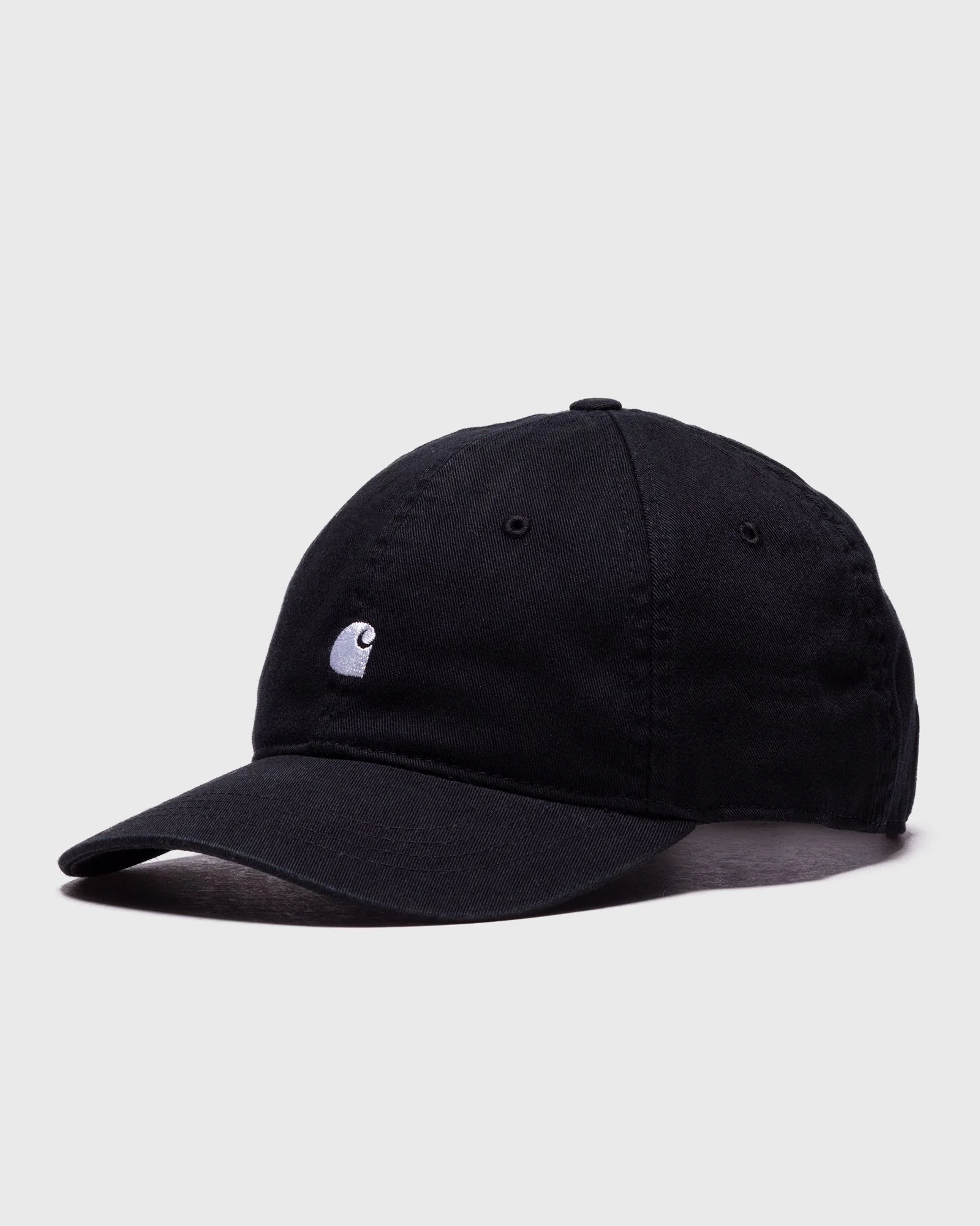 The Madison Logo Cap by Carhartt WIP is an unstructured and unlined cap made of six panels with a fixed, curved peak. The cap is made of 100% cotton twill and is pre-washed to increase comfort and protect against shrinkage or loss of shape. It has an adjustable strap and can therefore be individually adjusted. - Embroidered ventilation eyelets - Adjustable strap with metal buckle - Logo embroidery Article number: I023750-0D2.XX Gender: men,women Color: BLACK / WHITE Material: Full: 100% Cotton