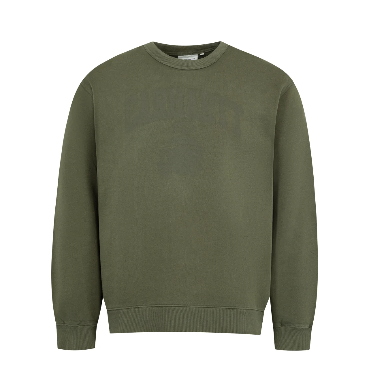 CARHARTT WIP Faded Pond Corps Sweatshirt featuring a heavyweight, unbrushed polycotton fabric with a tactile loopback construction, balloon fit, dropped shoulders, ribbed trims and a graphic print on the chest. 100% cotton. DESIGNER STYLE ID: I036065 COLOR: 6360 CYPRESS