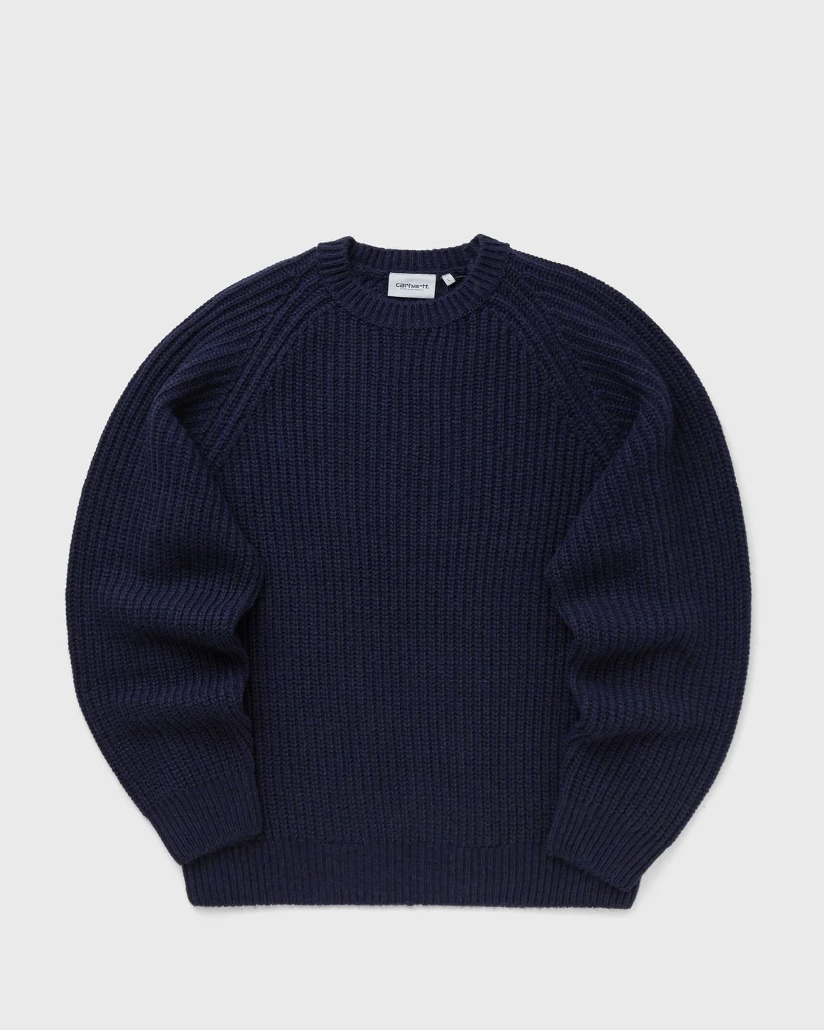 The Firth Sweater by Carhartt WIP is knitted from a blend of natural and synthetic yarns. The sweater features raglan sleeves and is embellished with a woven square label on the hem. - Raglan sleeves - Round neckline - Square label Article Number: I035388-1C.XX Gender: Men Color: dark navy Material: 80% Acrylic, 5% Alpaca, 5% Viscose, 10% Wool