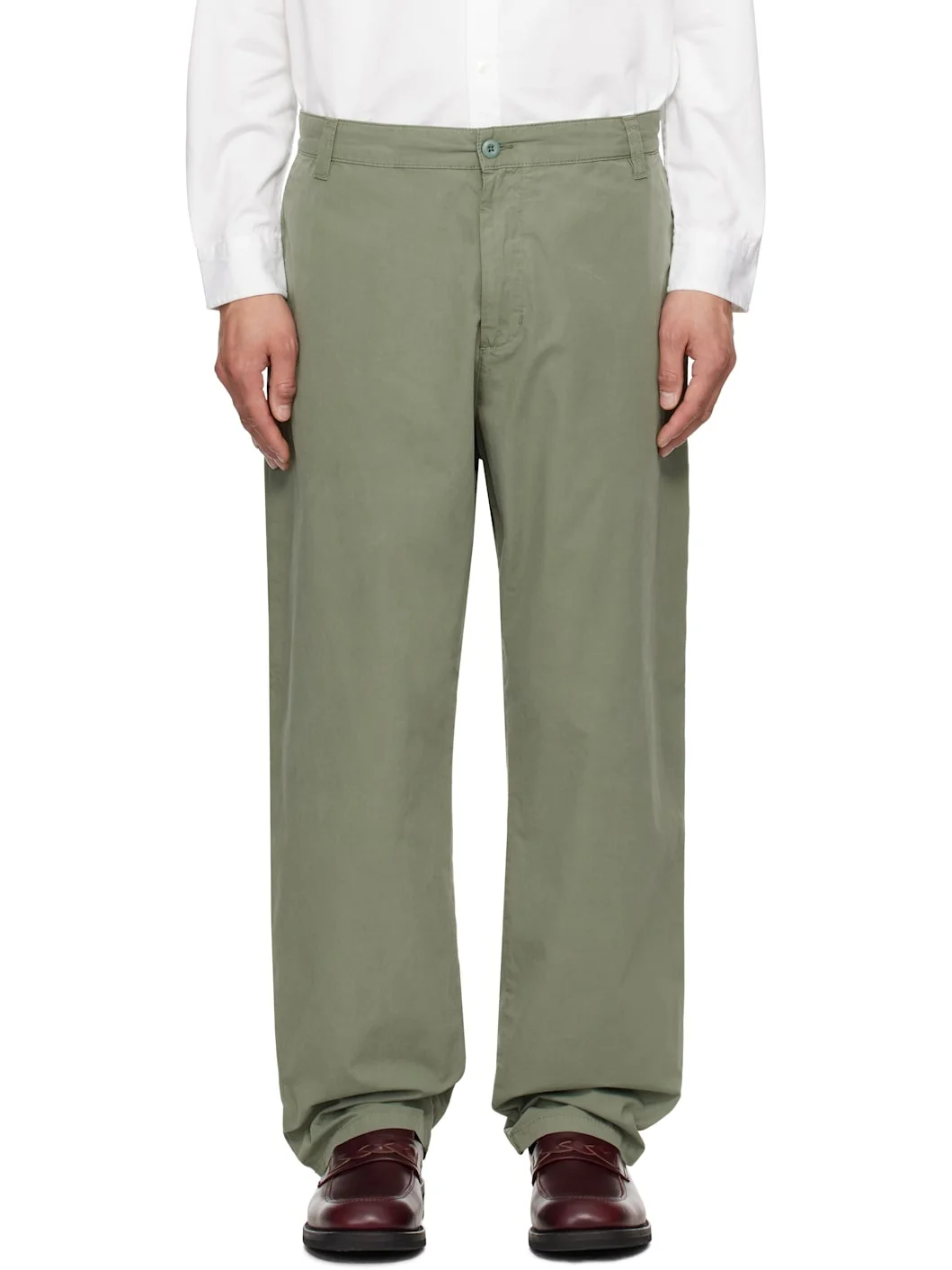 Loose-fit and tapered 6 oz cotton poplin trousers. · Garment-dyed · Belt loops · Four-pocket styling · Zip fly · Logo patch at back Supplier color: Park (garment dyed) 100% cotton. Made in Tunisia 251111M191038