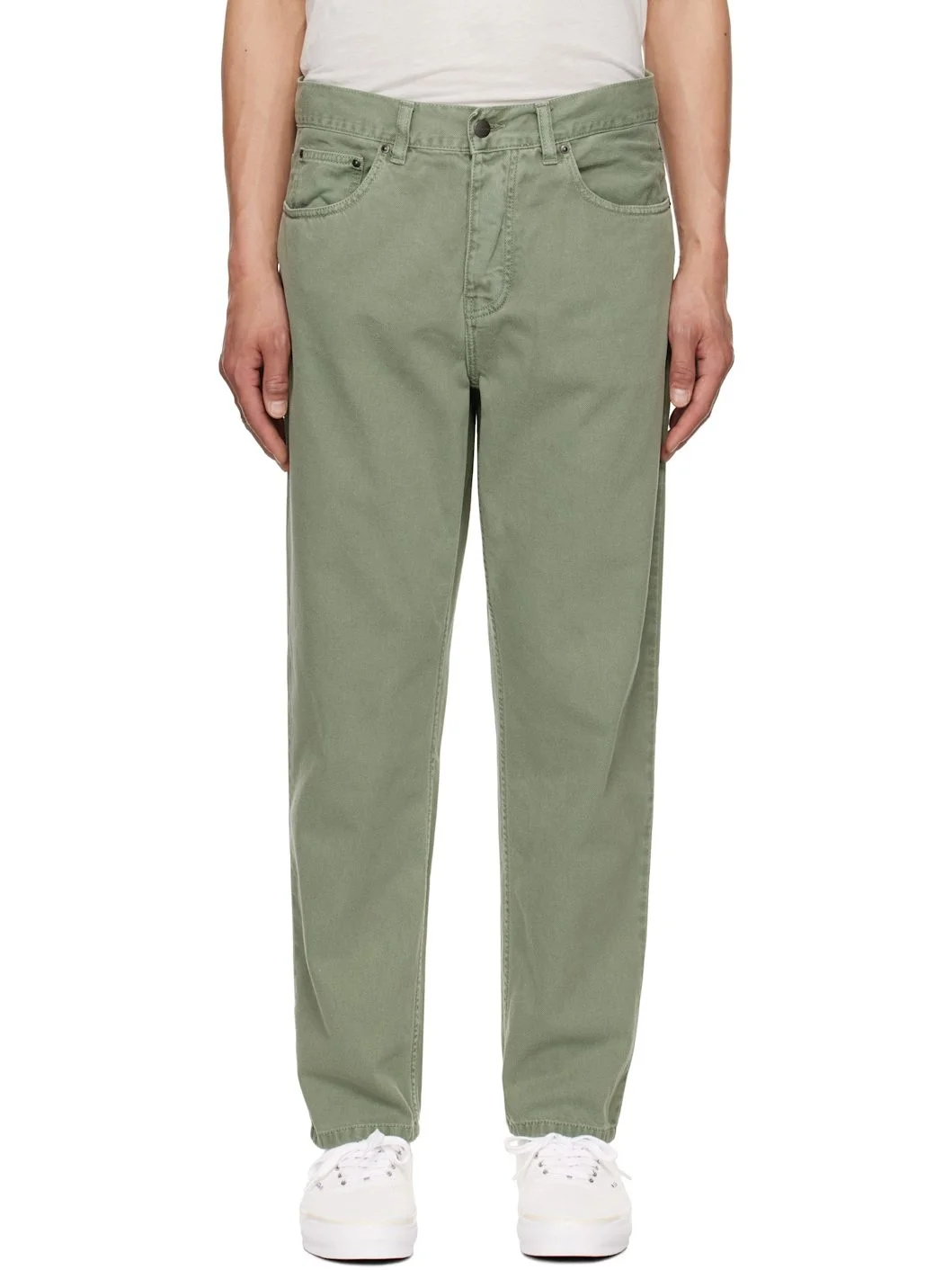 Stonewashed 10.5 oz cotton twill trousers. · Tapered-leg · Mid-rise · Belt loops · Five-pocket styling · Button fly · Textile logo patch at back pocket Supplier color: Park 100% cotton. Made in Tunisia 251111M186045