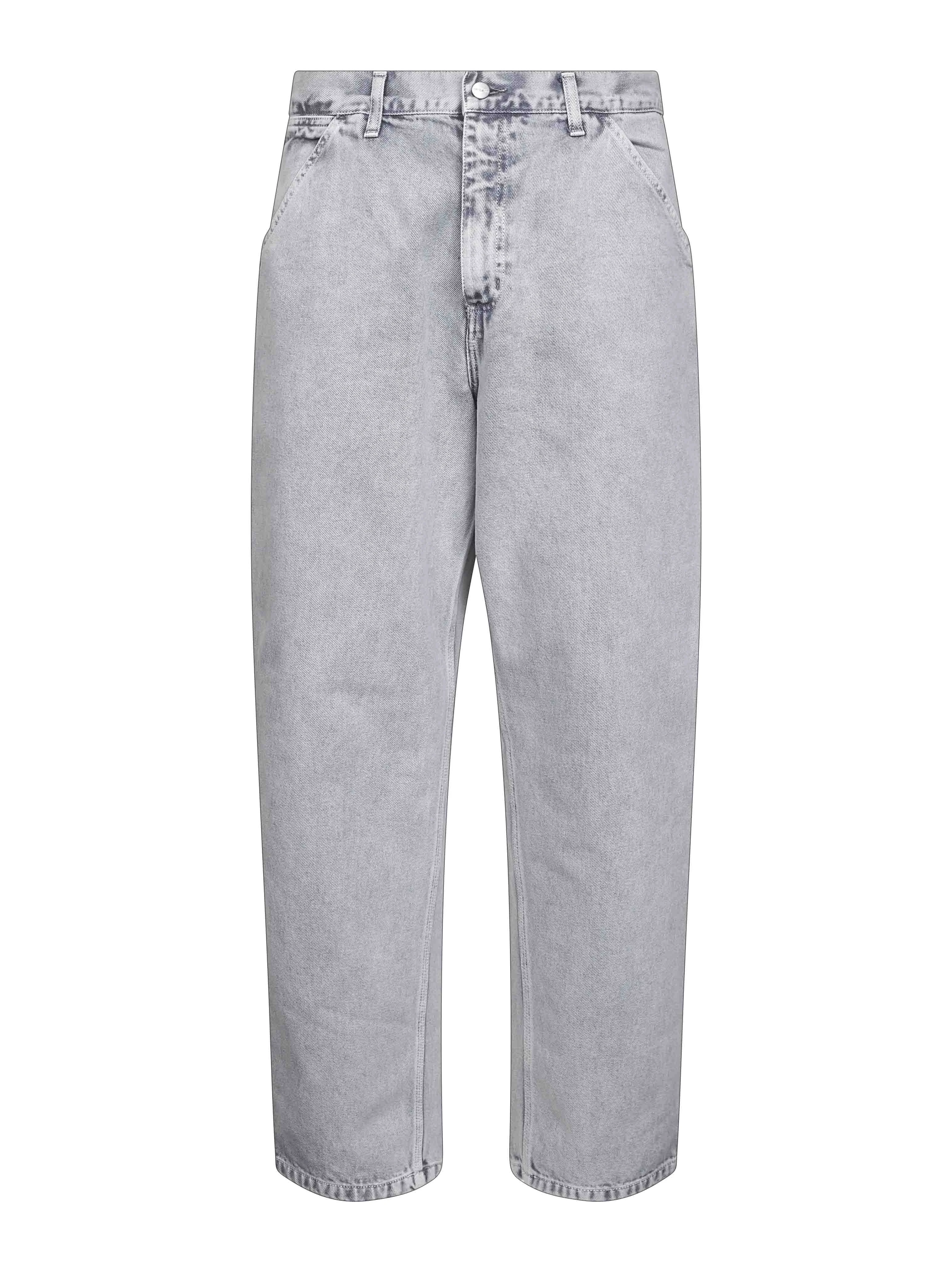 - Front zip fly closure, metal logo button - Regular waist with belt loops - Five pocket model; tool pockets and hammer loop - Square fabric label at back pocket - Triple-stitched; bartack stitching at vital stress points - Heavyweight smithfield cotton denim design with "chalk wash" treatment - Straight leg - Relaxed straight fit - White color - 100% cotton - Made in extra eu Natural (Veg): Cotton100 % Made in: Tunisia Season: A25 I03582632895F