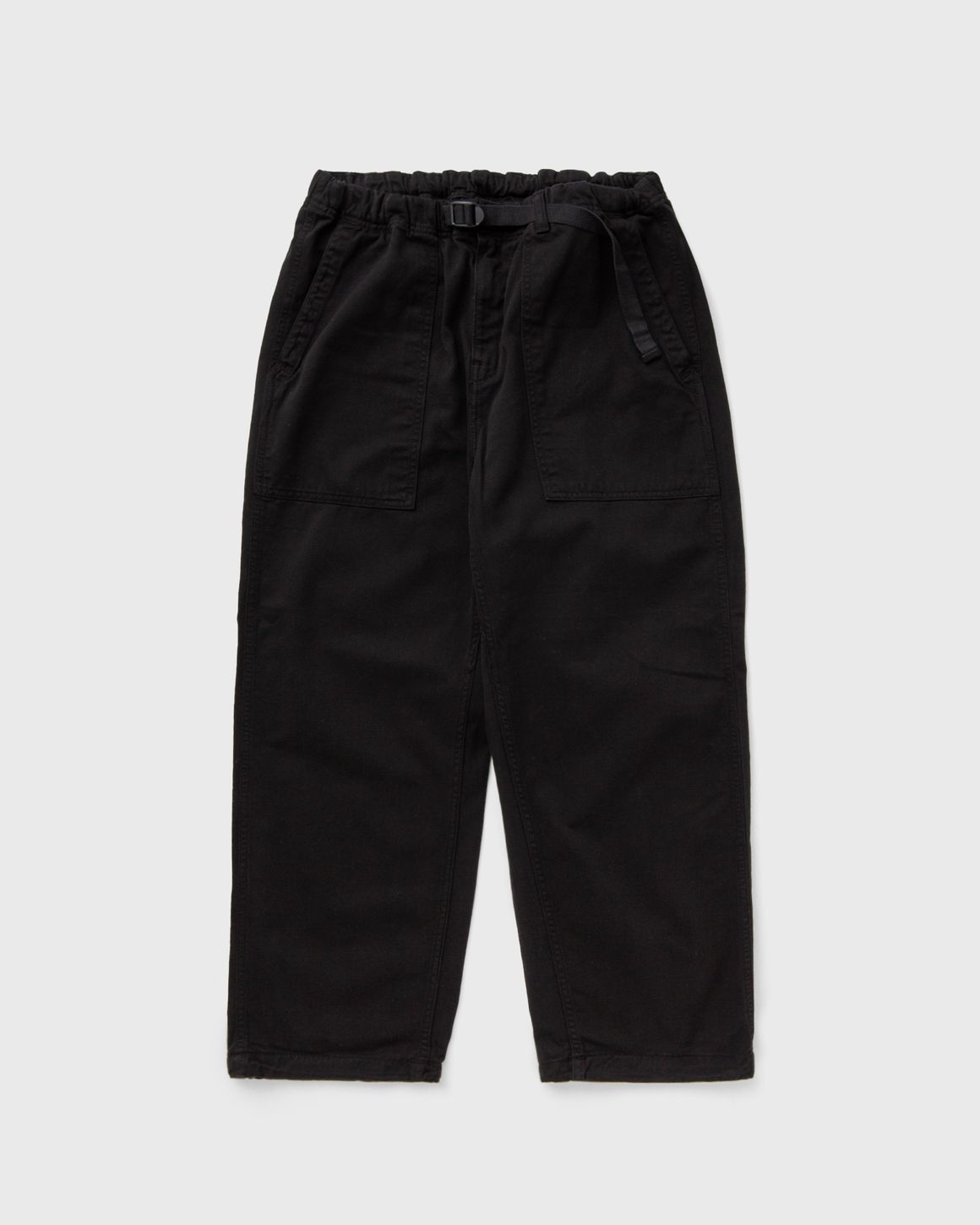 The Hayworth Pant by Carhartt WIP is made from a mid-weight cotton twill, has a wide tapered fit and is piece-dyed for a softer feel and more complex coloring. The style features an elastic waistband with an adjustable belt and adjustable leg openings. A woven square label completes the design. - Relaxed tapered fit - Regular rise - Piece-dyed - Elastic waistband with adjustable belt - Adjustable leg openings - Side and back pockets, one with flap - Zip fastening - Square label Article Number: I033761-89.GD Gender: Men Color: BLACK GARMENT DYED Material: 100% Cotton