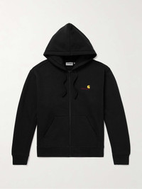 Carhartt WIP's 'American Script' is one of fashion's most recognisable logos – it's been a signature since the 1970s. It's embroidered at the chest of this zip-up hoodie, which is made from cotton-blend jersey with a soft fleece backing. Size & Fit - Fits true to size. Take your normal size - Designed for a loose fit - Mid-weight, slightly stretchy fabric - Model is shown wearing a M - Model measures: chest 38"/ 96cm, height 6'2"/ 188cm Details & Care - Black fleece-back cotton-blend jersey - Zip fastening - 80% cotton, 20% polyester; trim: 97% cotton, 3% elastane - Machine wash