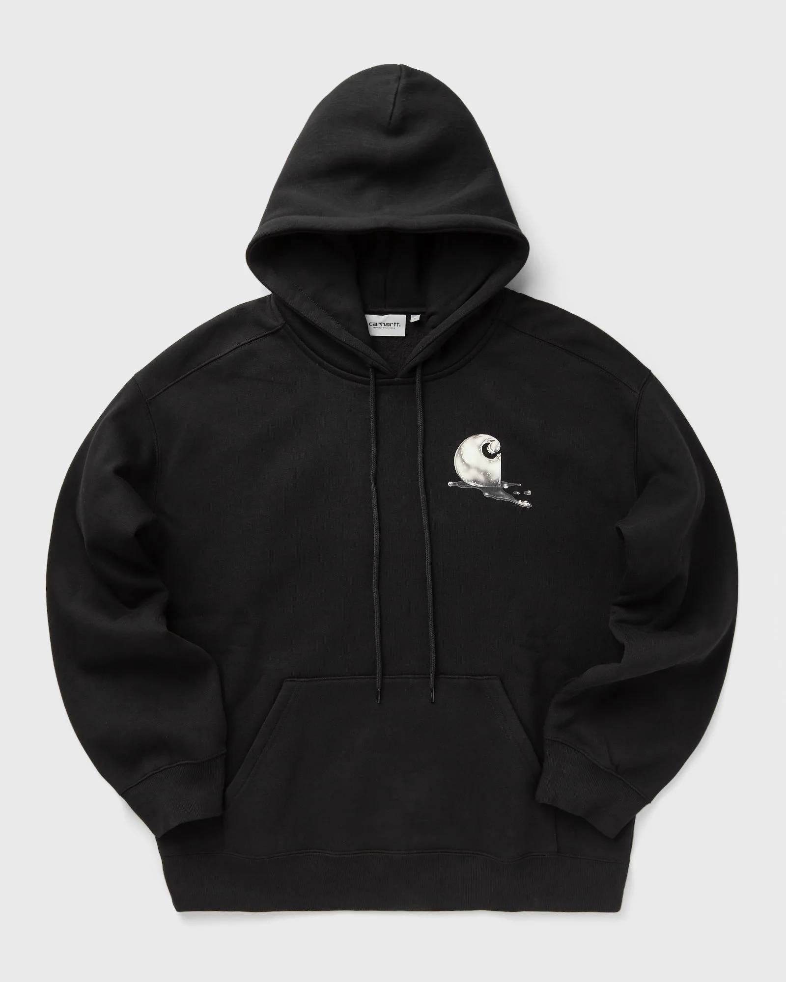 The Hooded Jake Garcia sweatshirt from Carhartt WIP is made from a heavy, brushed polyester-cotton jersey. The style has a balloon fit that is cut slightly wider and boxy, with dropped shoulders and ribbed cuffs. Graphic prints on the front and back of the style round off the design. - Balloon fit - Adjustable hood - Kangaroo pocket - Digital graphic print Article Number: I035191-89.XX Gender: Men Color: black Material: 58% Cotton, 42% Polyester