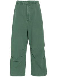Judd trousers Highlights - Green tea - Cotton - Concealed fly and button fastening - Elasticated waistband with internal drawstring - Garment dyed - Two side inset pockets - Pleat detailing - Logo patch to the rear - Two rear patch pockets - Drawstring ankles Imported Composition Outer: Cotton 100% Lining: Cotton 100% SIZE & FIT Model measurements Height 6 ft 2 in(1.89 m) Bust/Chest 39.76 in(101 cm) Hips 37.4 in(95 cm) Waist 29.92 in(76 cm) FittingInformation Designed with a wide leg, offering a loose and roomy fit Adjust this piece’s waistband to your preference using the drawstring Made from a midweight non-stretch fabric Washing instructions Machine Wash