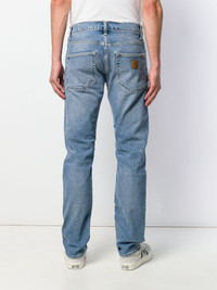 Klondkike jeans Blue cotton blend Klondkike jeans from Carhartt WIP featuring a waistband with belt loops, a button and zip fly, a five pocket design and a regular length. Imported Composition Outer: Cotton 99%, Spandex/Elastane 1% Lining: Polyester 65%, Cotton 35% SIZE & FIT Model measurements Height 6 ft 2 in(1.87 m) Bust/Chest 37.79 in(96 cm) Hips 37.79 in(96 cm) Waist 30.31 in(77 cm) FittingInformation This piece fits true to size. We recommend you get your regular size Cut for a relaxed fit Made with a mid-weight stretch fabric Washing instructions Machine Wash