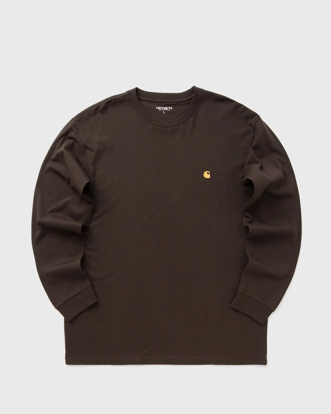 The L/S Chase T-shirt from Carhartt Wip is made from a combed cotton jersey. It has a loose fit and is rounded off with an embroidered logo on the chest. - Round neckline - Long sleeves - Embroidered logo Article Number: I026392-00W.XX Gender: Men Color: TOBACCO / GOLD Material: 100% Cotton