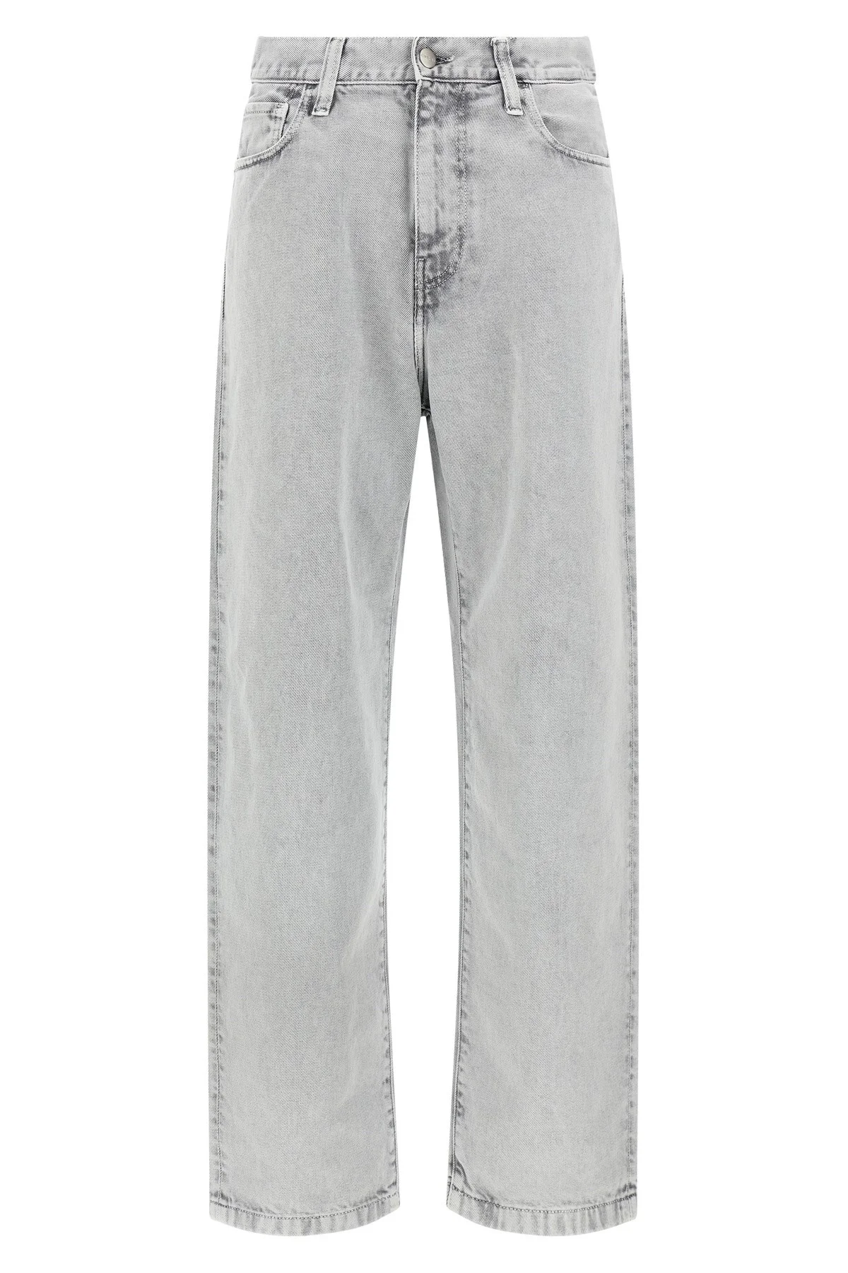cod. I033749895F Smithfield heavy cotton denim 'Landon' jeans washed with abrasive stones, wide and tapered leg, regular waist, front zip and button closure, five pockets, and back logo patch. Color: Gray Size & Fit: Loose tapered fit Composition: 100% cotton Made in: Tunisia PROMO CODE NOT APPLICABLE