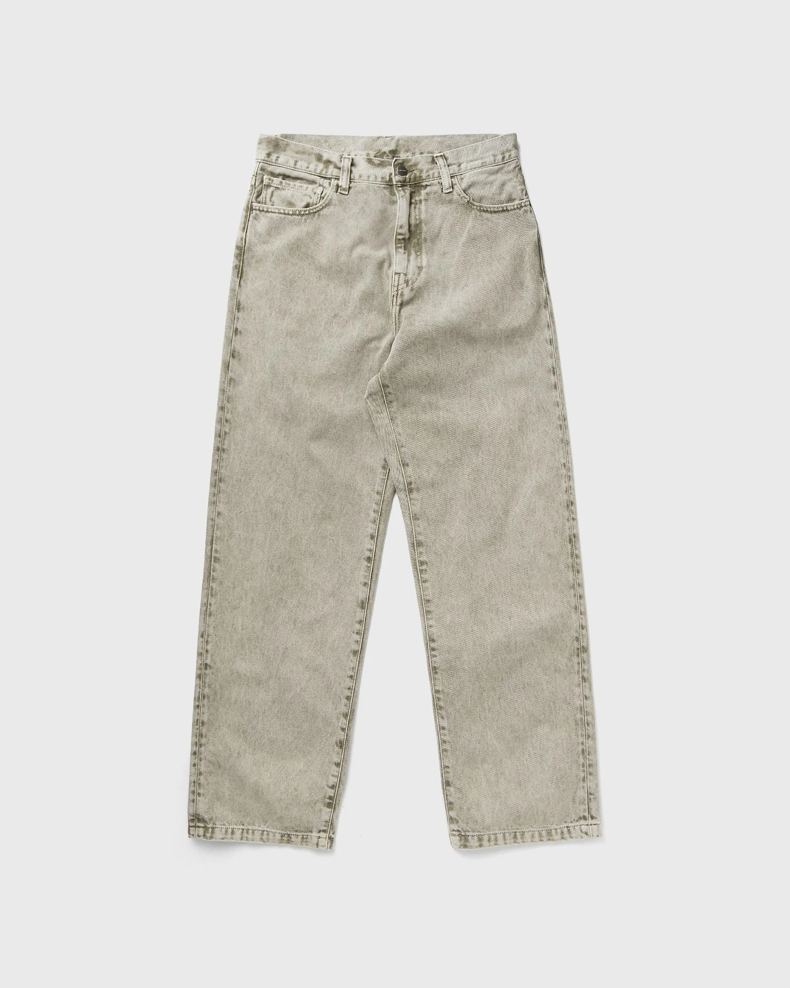 The Landon Pant by Carhartt WIP has a five-pocket design and is made from heavy cotton denim that has been stonewashed to give it a faded look. The pants have a loose tapered fit with a regular waist height. A woven square label on the back pocket completes the design. - Loose tapered fit, regular waist height - Contrast stitching - Saddle stitching - Zipper fly Article number: I033749-2ZX.5F Gender: men Color: OPUNTIA Material: 100% Cotton