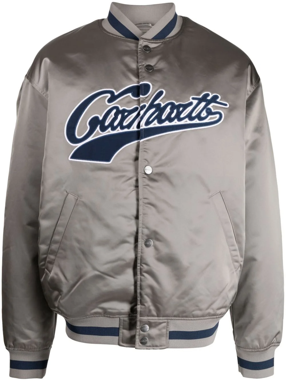 logo-patch bomber jacket Highlights - Grey - Satin finish - Logo patch at the chest - Front button fastening - Slip pockets to the sides - Ribbed band collar - Long sleeves - Ribbed cuffs and hem Imported Composition Body: Nylon 100%